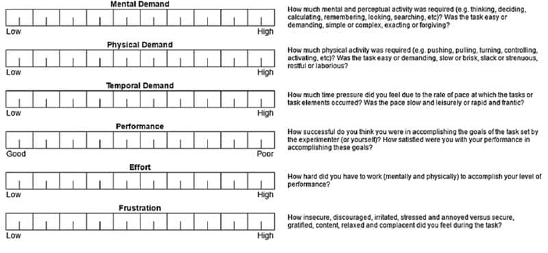 Self-Report Methods: NASA Task Load Index (NASA-TLX)